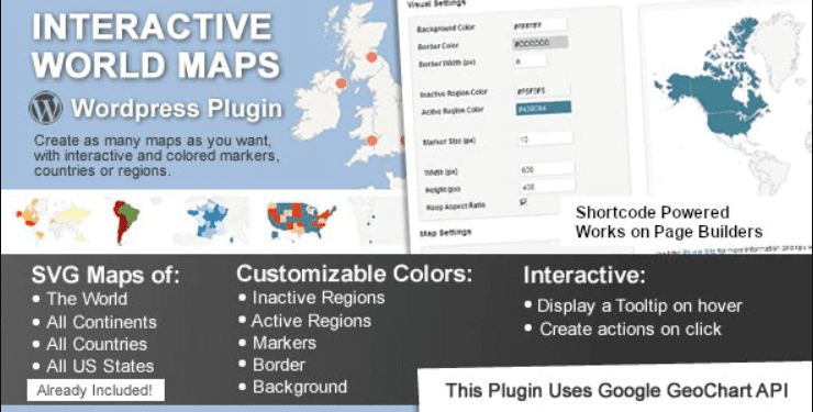 This is a WordPress plugin to create as many maps as you want, with interactive and colored markers, continents, countries or regions.
