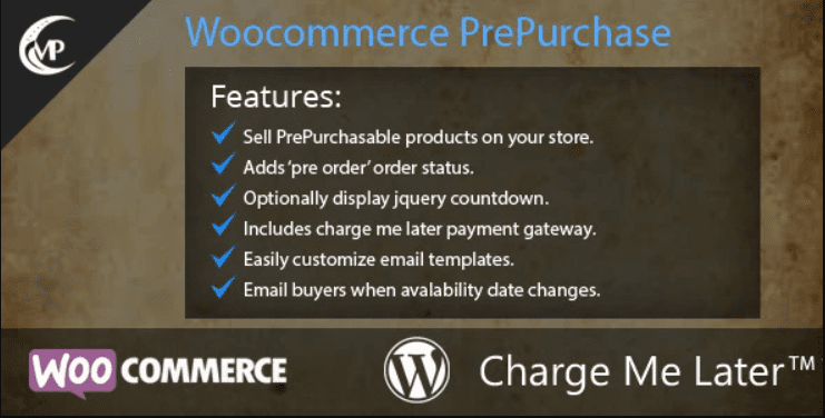 Woocommerce PrePurchase is a Woocommerce extension that adds the ability of selling on your store products that are not yet available but you would like to list on your store so that customers can pay for it in full or simply pay using the charge me later payment gateway pending the availability date.