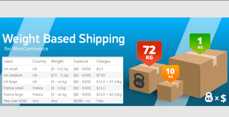 Weight Based Shipping is a simple yet flexible shipping method for WooCommerce focused mainly on cart weight (but not limited to) to calculate shipping cost. Plugin allows you to add multiple rules based on various conditions.